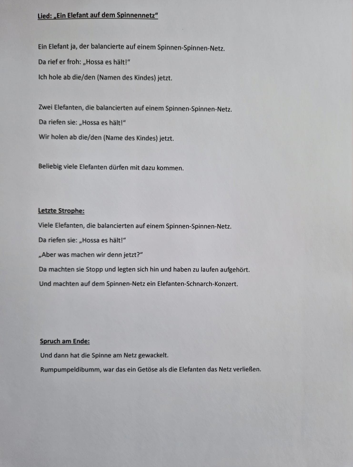 In der türkisen Gruppe wurde ein neues Spiellied über Elefanten eingeführt.