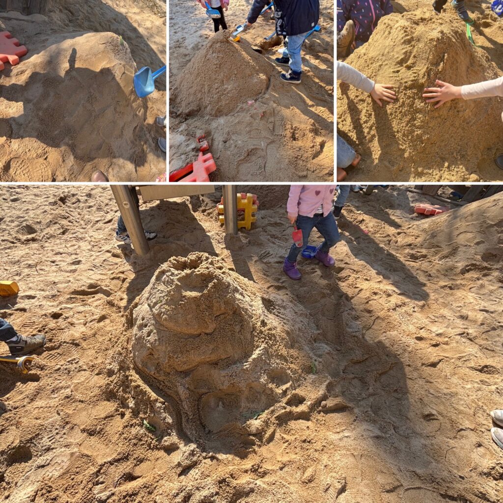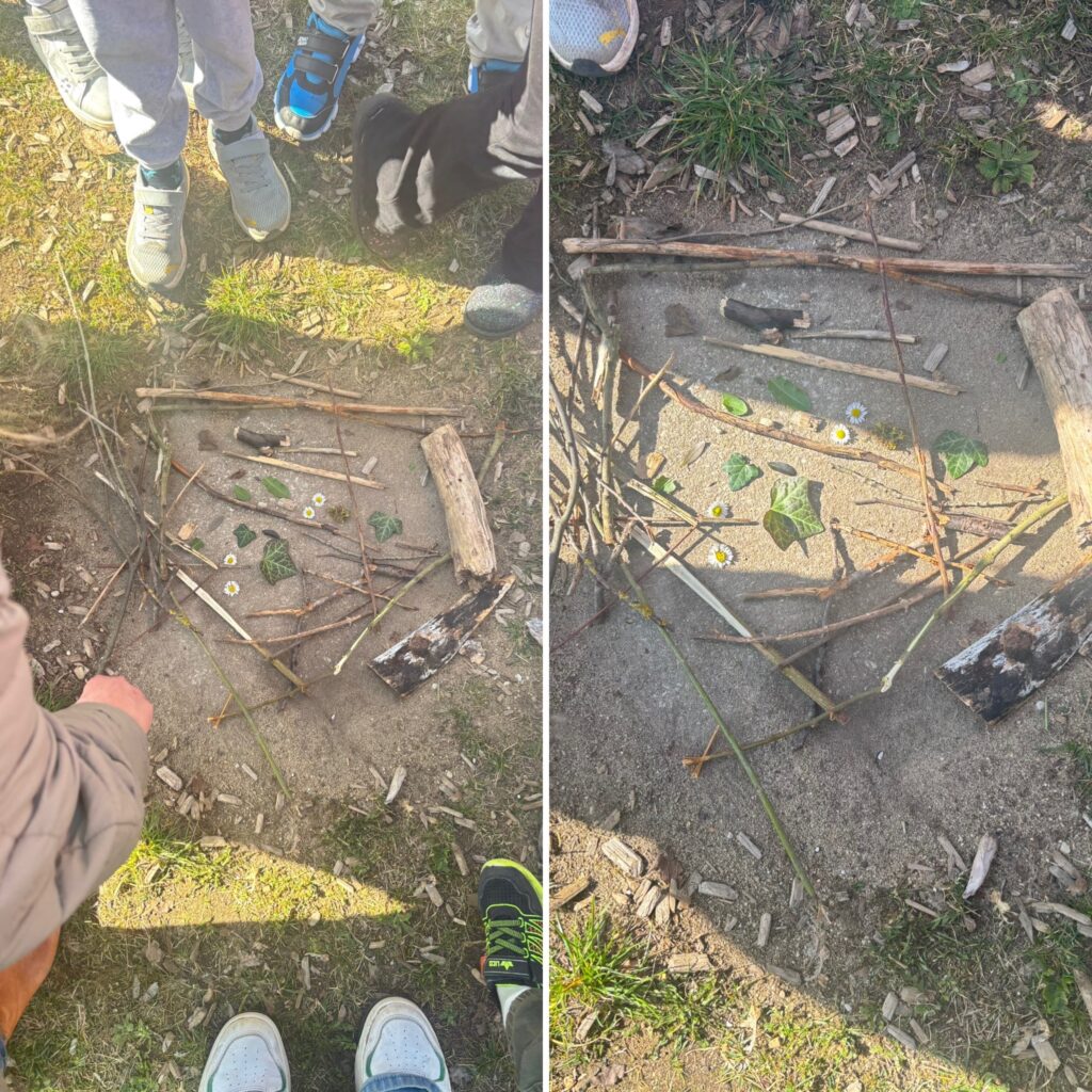 Einige Kinder sind spazieren gegangen zu einem Spielplatz in Oberfürberg. Dort wurden die Kinder zu kleine Natur Detektiven. Sie haben verschiedene Dinge aus der Natur gesammelt, zum Beispiel Blätter, etwas aus Holz, etwas rundes… Anschließend haben sie die Fundstücke gemeinsam betrachtet, beschrieben, wie sie sich anführen und daraus ein Mandala gelegt. Im Anschluss haben sich die Kinder am Spielplatz ausgedruckt, waren schaukeln klettern, balancieren. Danach ging es wieder zurück in den Kindergarten..