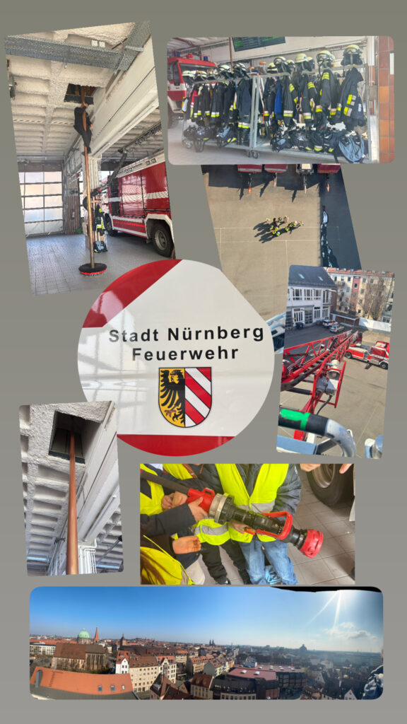 Für ein eine Gruppe der Vorschulkinder ging es zur Feuerwehrwache 3 nach Nürnberg. Die Kinder durften mit dem Feuerwehrmann das Feuerwehrauto anschauen und haben viele Infos zur Feuerwehr bekommen (z.B die Feuerwehrleute die Stange herunterrutschen, wie eine Wärmebildkamera ausschaut…) Ein weiteres Highlight war die Drehleiter, mit der man bis zu 30 m hochfahren kann. Zum Abschluss durften sie noch mit erleben, wie die Feuerwehr zu einem echten Einsatz aufgebrochen ist.